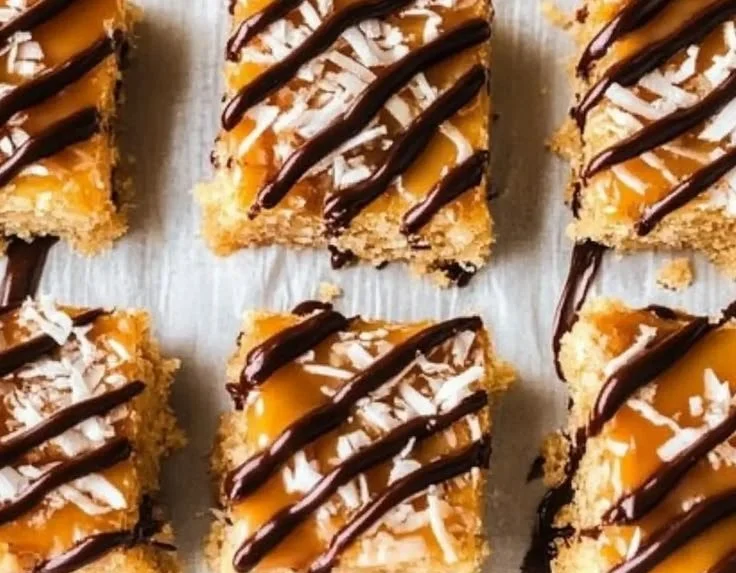 Irresistible dessert bars combining buttery crust, sweetened shredded coconut, and decadent caramel for a satisfying chewiness.